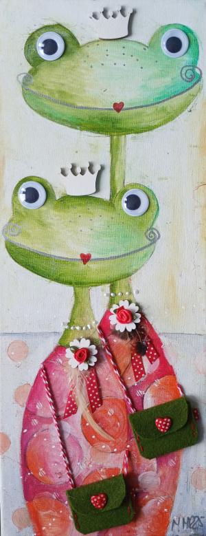 Ob elegante Damen mit Hüten oder Krönchen, fröhliche Vögel oder charmante Froschköniginnen – meine Bilder zaubern gerne ein Lächeln ins Gesicht. Mit kräftigen und zugleich harmonischen Farben entstehen kleine Werke voller Charme und Lebensfreude.