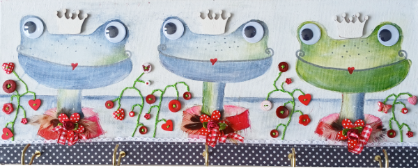 Bild K26, 60 x 20 cm, Öl auf Leinwand, 3 superschöne Shabby-Rahmen, Wackelaugen, Krönchen, Federn und vieles mehr, 49 €, zuzüglich Versandkosten